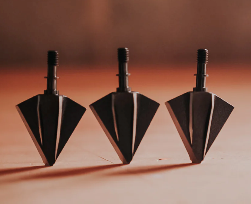 Inspired by the most lethal swords ever made, the Katana’s blades are sharp on one side only for enhanced lacerating effect, paired with a steep angle for bone-splitting impact. The unique scoop shape reduces friction, induces internal pressure changes, and removes mass for wider, non-closing wound channels — meaning faster animal expiration and better blood trails.