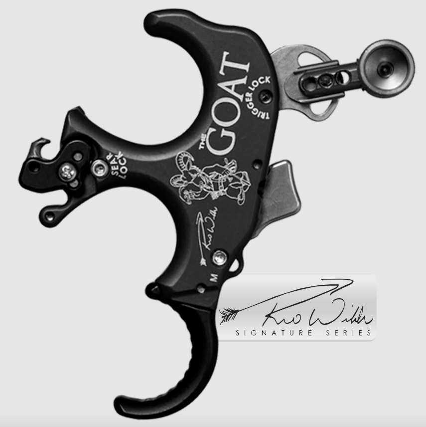 The Reo Wilde signature series Goat combines two of the most popular methods of activation into one unprecedented release. The Goat can be used as a thumb activated trigger release or hinge release in three easy steps, taking about 30 seconds to switch, the Goat comes with a half nickel plated brass, half black aluminum tapered handle, and articulating finger pieces to make the release a three or four finger configuration. The Goat in the package is set as a thumb activated release, with individual trigger travel and trigger sensitivity screws with locks. Remove a single dowel (step 1), turn sear lock screw clockwise until tight (step 2) and turn trigger lock screw clockwise until tight (step 3) to make the Goat a hinge style release, it is that simple! The Goat as a hinge comes standard with a medium click installed and a no click option can be achieved by flipping the sear 180 degrees. There will be an option for a fast click. Treat yourself, and try the Goat one of the most innovative releases to ever hit the market.