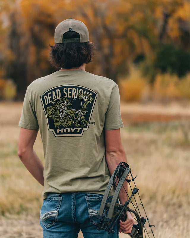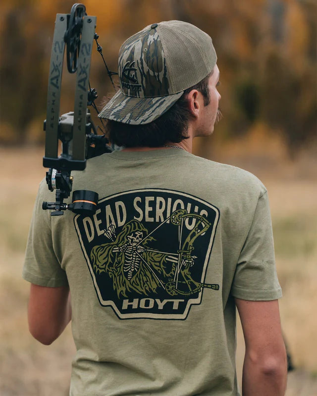 It's not just a hobby for us. We're not even merely serious about bowhunting. We're dead serious! When you have a Hoyt in hand and the drive to get it done, you become the Grim Reaper. This is the shirt for the hunter that sees bowhunting as much more than just a "hobby". This is who we are.