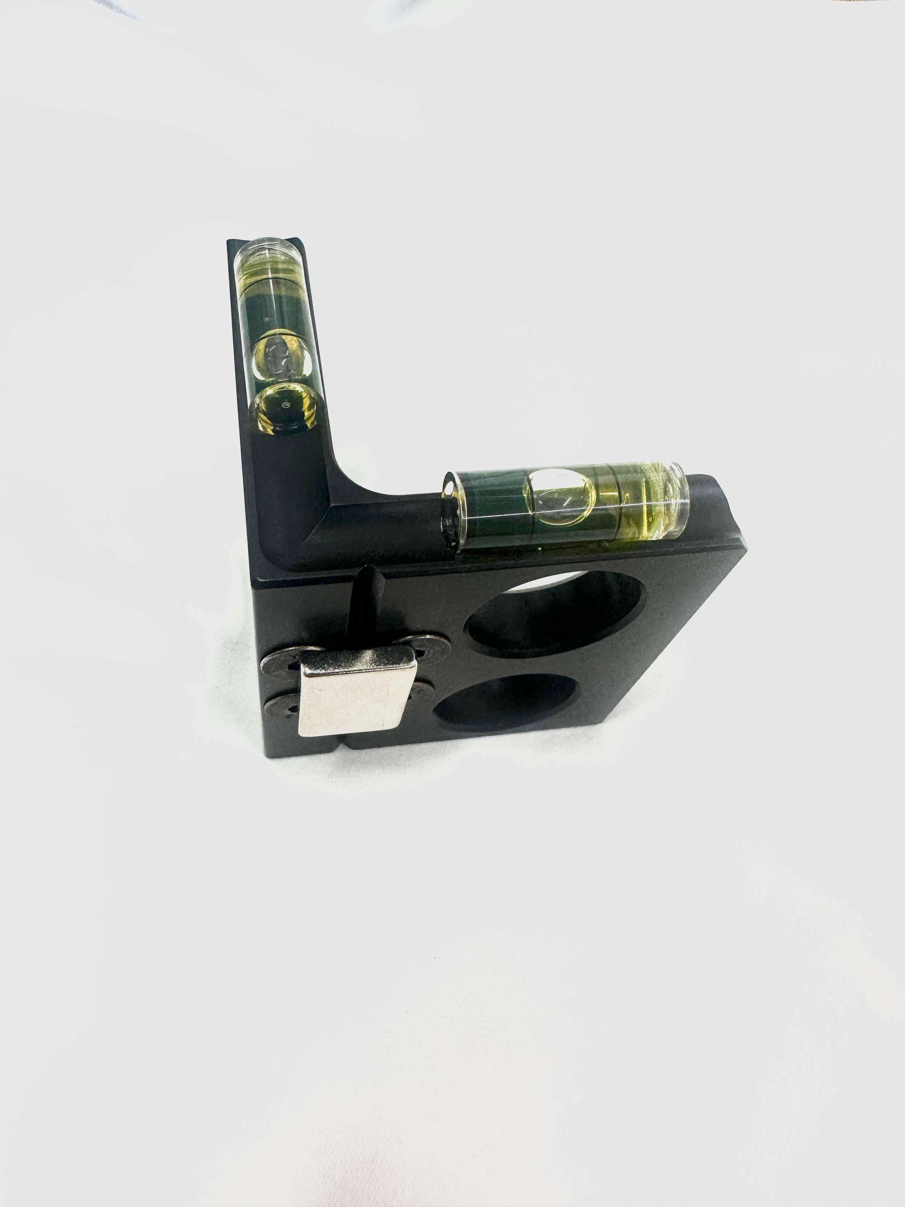 This is a simple easy use 2 way string level. This has an adjustable height magnet attachment for different diameters of strings.