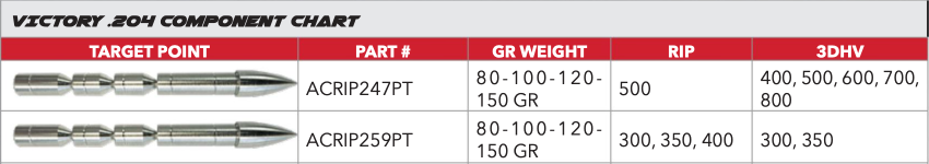 Constructed of high strength 303 stainless steel. For .204"diameter Victory shafts. Break off point allows for 150-120-100-80 grains of adjustability